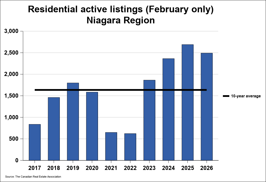 Niagara Real Estate Market Update: Niagara Association of REALTORS® (NAR) MLS® home sales continue trending at subdued levels in February as new listings begin to step down